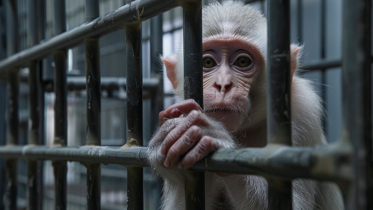 A monkey in a cage